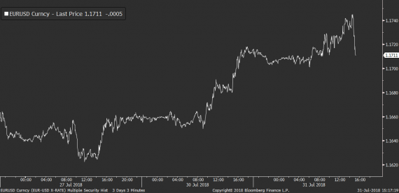 I tak jsme se dnes ale dočkali několika zajímavých makrodat. Z ekonomického kalendáře nás zaujaly výsledky evropského HDP a inflace, která meziročně poskočila na 2,1 % (více v článku od Kamila). Euro však z lepších výsledků příliš vytěžit nedokázalo, jelikož mu odpoledne uškodil komentář MMF , který opět negativně zhodnotil schopnost Řecka postavit se na vlastní nohy. Euro však výrazněji neztrácí a dál si tak v pohodě drží zisky, které nabralo během pondělní seance a díky kterým už zlikvidovalo ztráty z minulého čtvrtka. Klíčovým pro další vývoj na EURUSD je nyní zítřejší zasedání Fedu, které může udat tón obchodování na tomto páru do několika obchodních seancí dopředu.