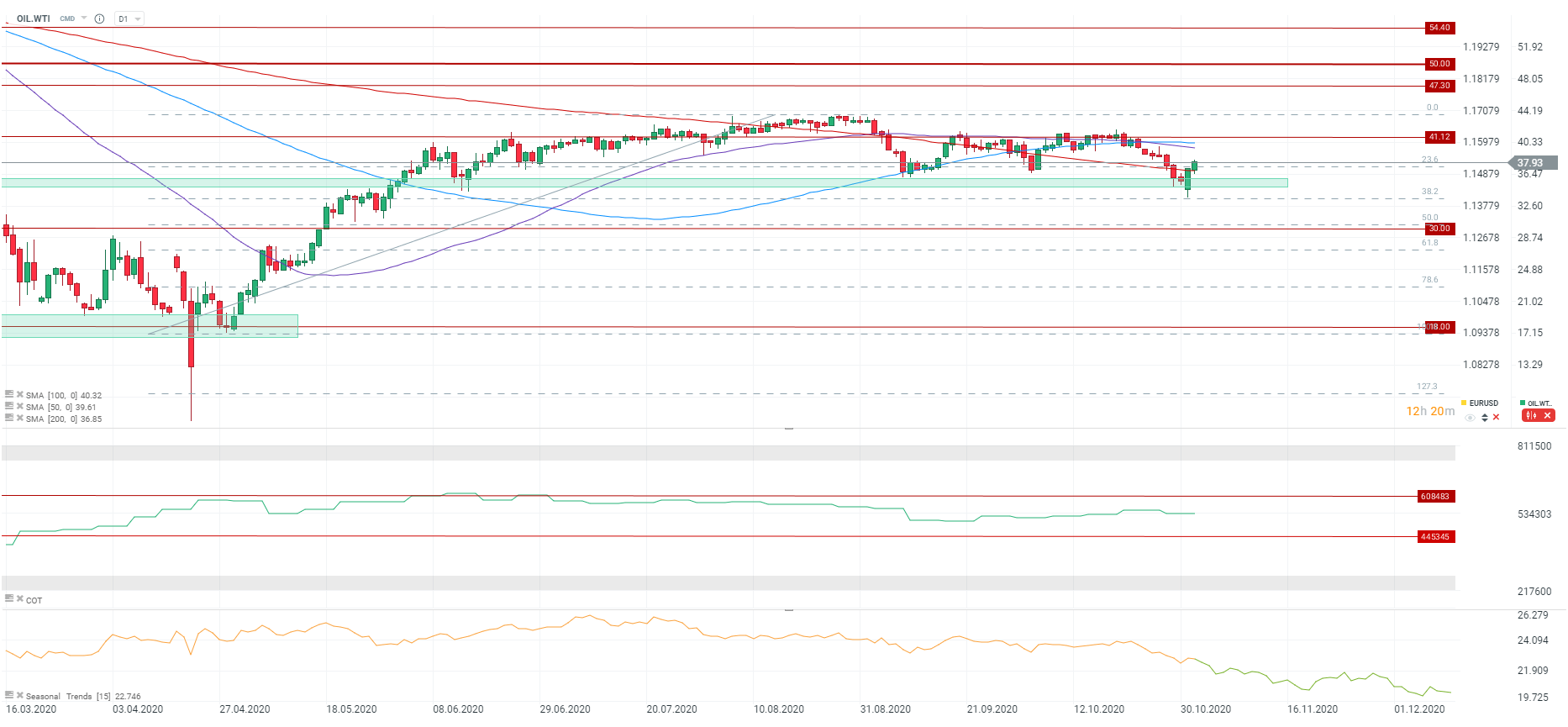 - Vítězství Bidena v amerických prezidentských volbách by mohlo přinést tlak na ceny ropy, naopak vítězství Trumpa by mohlo znamenat pozitivní reakci. I v tomto případě by však neměla ropa opustit konsolidační zónu