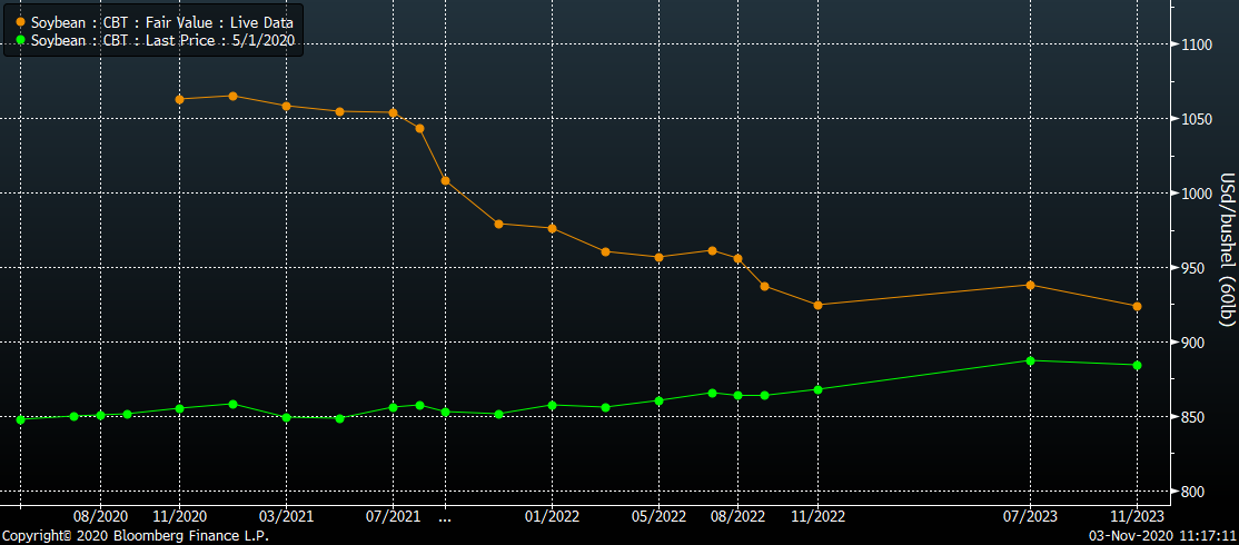 - Cena sójových bobů zůstává vysoko - v okolí 1 070 centů za bušl. Tedy na podobných úrovních, kde se nacházely na začátku obchodní války s Čínou.