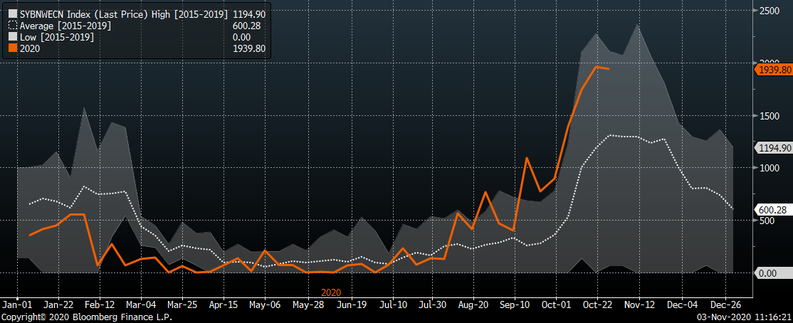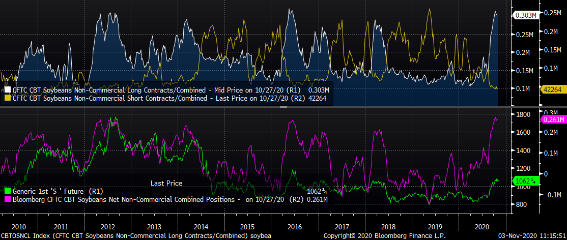 - Na bobech jsme svědky extrémní úrovní net-long a long pozic. Jsou velkým rizikem pro další vývoj ceny, která se může propadnout