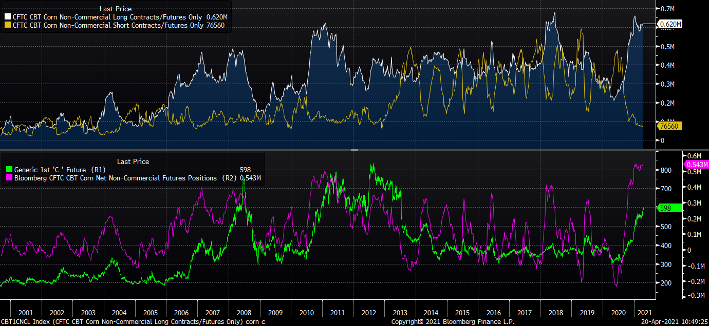 CFTC pozice připomínají situaci z roku 2011, což by ukazovalo na setrvale zvýšené ceny povětšinu tohoto roku (pravděpodobně do sklizně)