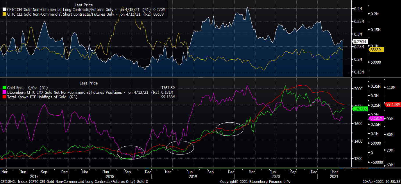 Množství zlata v držení ETF fondů kleslo pod 100 mil. uncí. Nicméně rychlost prodejů se snižuje. Podobné situace z roku 2018 a 2019 naznačují, že by se mohlo jednat o bod obratu