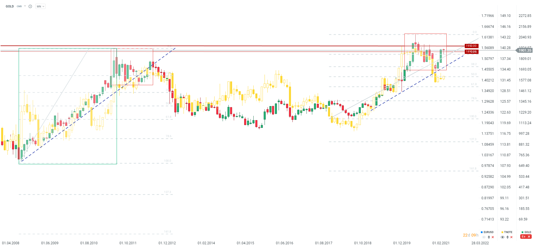 Zlato si prošlo slabším startem do nového měsíce kvůli komentářům Janet Yellenové o prospěšnosti mírně vyšších úrokových sazeb. Pokles se však brzy podařilo zastavit a cena se vrátila do blízkosti úrovně $1 900. Průraz nad tuto úroveň by znamenal býčí signál. Naopak pokles pod $1 890 a úroveň 23,6 Fibo retracementu by mohl přinést hlubší korekci. Tento pohyb by mohl zažehnout další vzestup výnosů z dluhopisů. Zdroj: xStation5