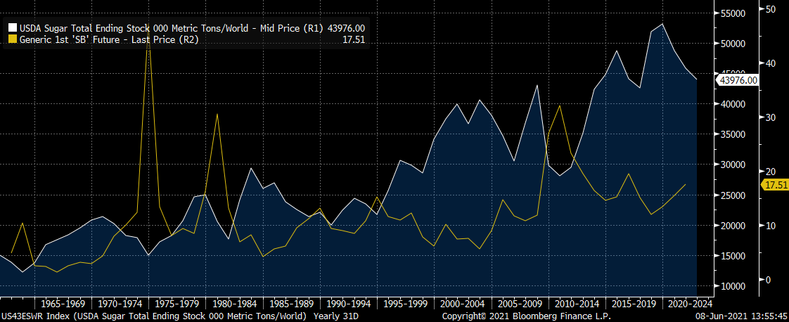 Zásoby cukru by měly pokračovat v poklesu. Zdroj: Bloomberg