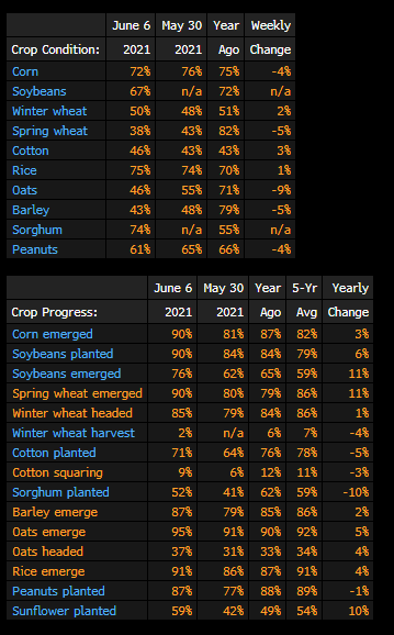 Kvalita kukuřice se za poslední týden podstatně zhoršila a je nižší než v minulém roce. Pokud se udrží vysoký objem importů do Číny, tak cena suroviny může dále růst. Zdroj: Bloomberg