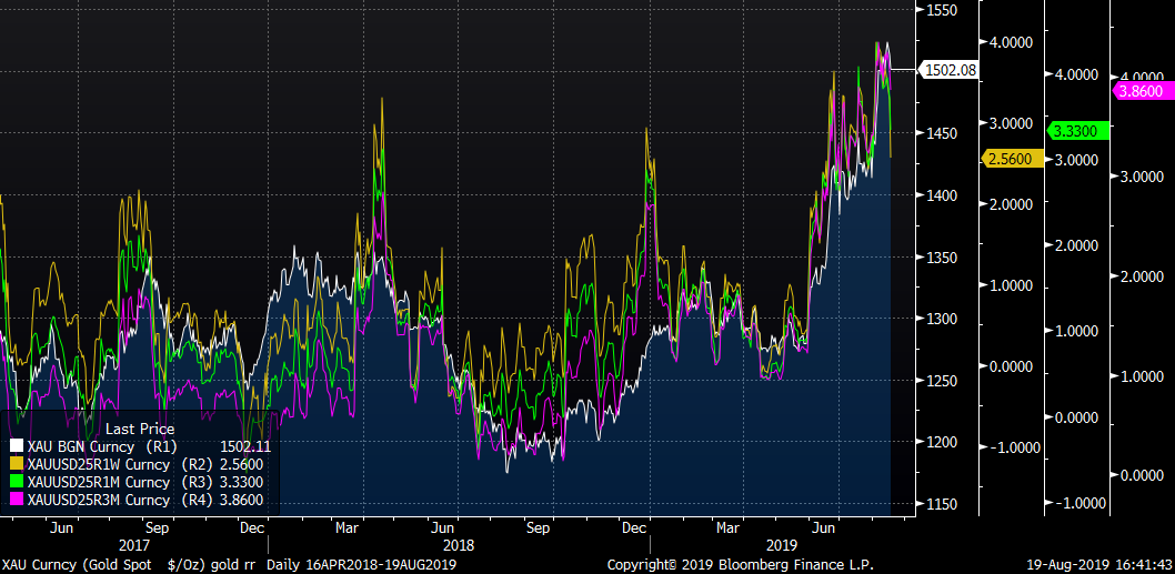 - Opční trh spíše vypovídá o přehřátí na zlatě. Ze současných úrovní by ceny mohly začít klesat