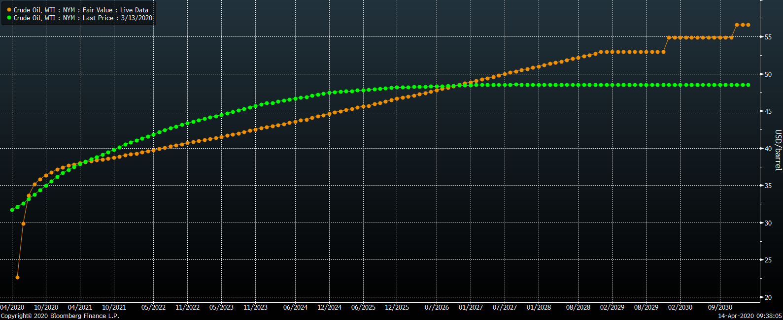 V dalších 3 měsících se očekává masivní contango na ropných futures kontraktech. Spread mezi červnovým a květnovým kontraktem překonal 7 dolarů. Jedná se o cenové rozdíly, kterých komoditní kontrakty naposledy dosahovaly během poslední finanční krize