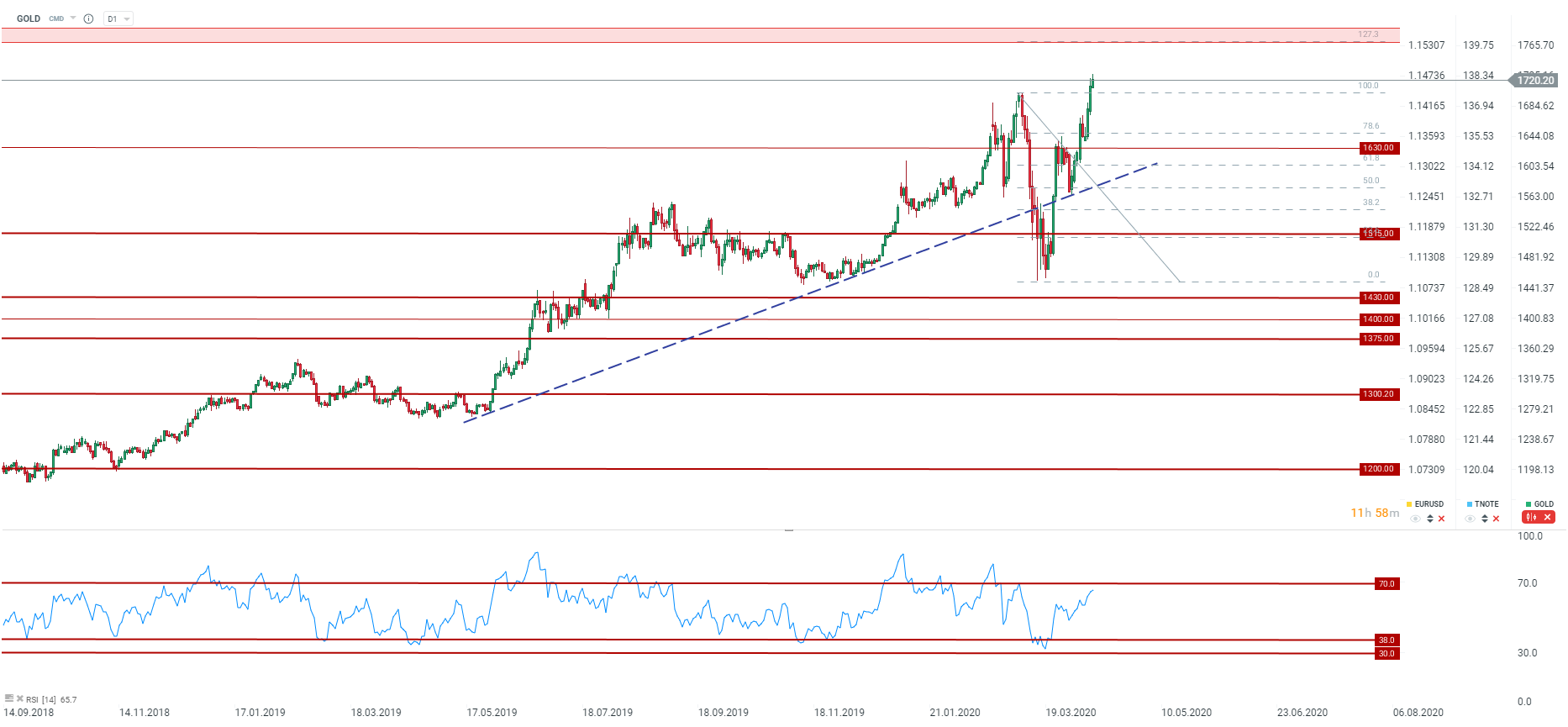Další potenciální cíl pro zlato může být dosažen na úrovni 1780 dolarů. Lokální maxima z října 2012 se nacházejí právě zde. Zdroj: xStation5