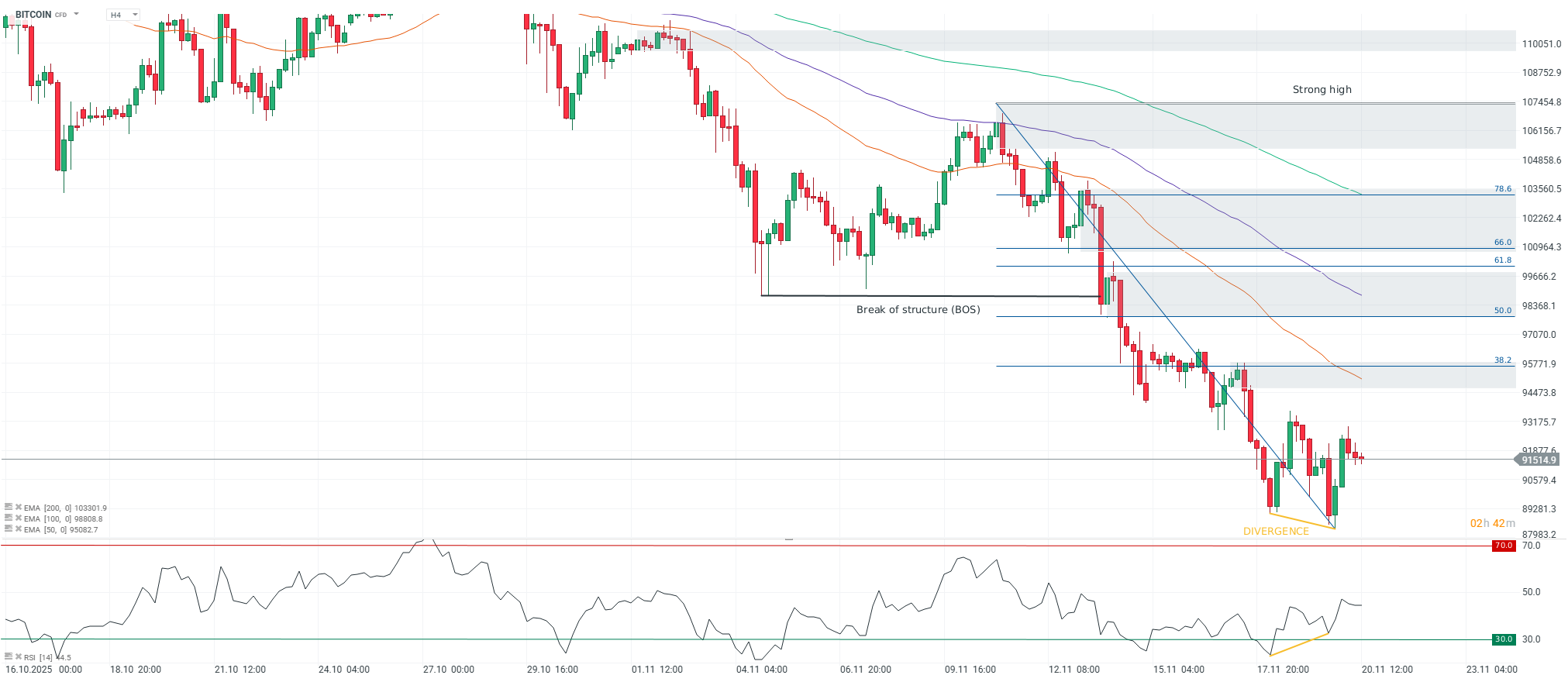 Trh sleduje další psychologické úrovně u 85 a 80 tisíc USD a především letošní dubnové minimum poblíž 74 425 USD. Celková tržní kapitalizace kryptoměn klesla z vrcholu okolo 4,3 bilionu USD na přibližně 3,2 bilionu USD. Významným momentem byla vlna nucených likvidací 10. října, kdy bylo uzavřeno přes 19 miliard dolarů pákových pozic. Následoval řetězec margin callů, odlivů z ETF a útlum zájmu nových kupců.