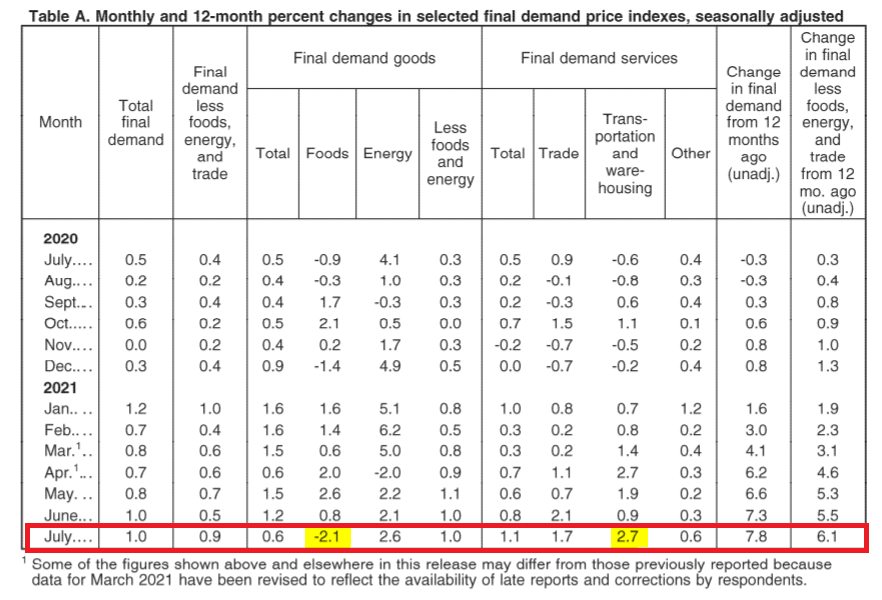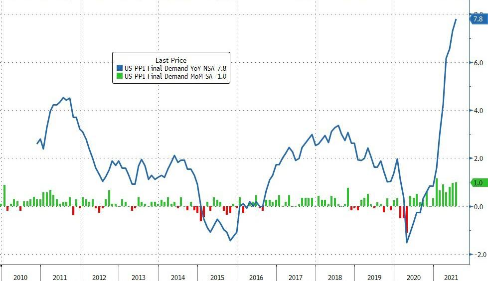 Americké údaje o inflácii PPI za júl, ktoré boli zverejnené dnes, boli trhmi dlho očakávané. Správa ukázala, že ceny výrobcov rástli rekordným tempom. PPI vzrástla medziročne o 7,8% (v porovnaní s medziročným nárastom o 7,3%). Jadrová inflácia tiež prekonala odhady - jadrový PPI vzrástol o 6,2% medziročne alebo o 1,0% MoM (oproti očakávaniam vo výške 5,6% medziročne a 0,5% MoM). Medziročný nárast bol najväčší v histórii (séria sa datuje do roku 2010).