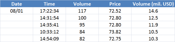 Největší obchody podle objemu na Brent (aktivní future kontrakt)