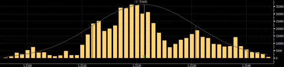 - nejvíce obchodů zrealizováno na ceně 1.3119