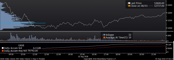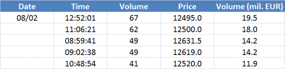 Největší obchody podle objemu na DAX (aktivní future kontrakt)