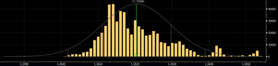 - nejvíce obchodů zrealizováno na ceně 1.1614