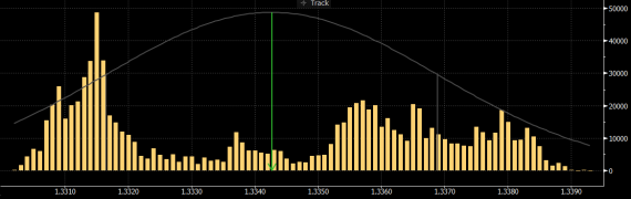 Celkový počet obchodů na jednotlivých cenách během minulé obchodní seance. Úrovně, na kterých se minulou obchodní seanci daný měnový pár nejčastěji zdržoval, mohou působit jako účinný magnet také dnes.