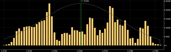 Celkový počet obchodů na jednotlivých cenách během minulé obchodní seance. Úrovně, na kterých se minulou obchodní seanci daný měnový pár nejčastěji zdržoval, mohou působit jako účinný magnet také dnes.