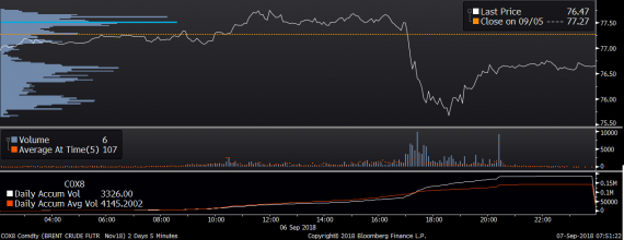 Největší obchody podle objemu na Brent (aktivní future kontrakt)