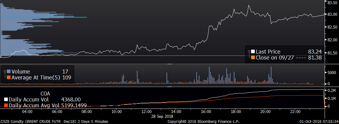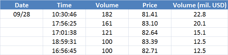 Největší obchody podle objemu na Brent (aktivní future kontrakt)