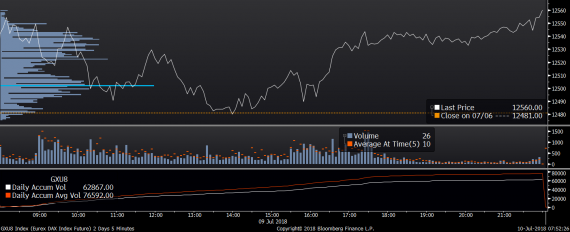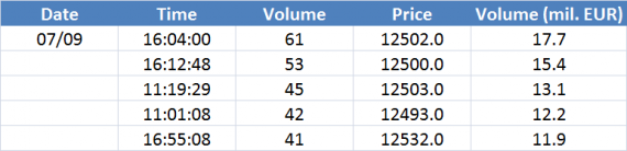 Největší obchody podle objemu na DAX (aktivní future kontrakt)