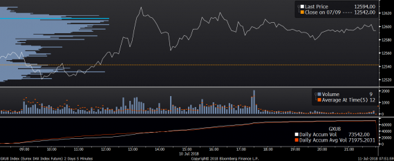 Největší obchody podle objemu na DAX (aktivní future kontrakt)