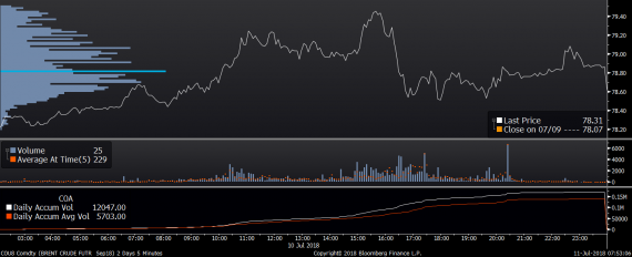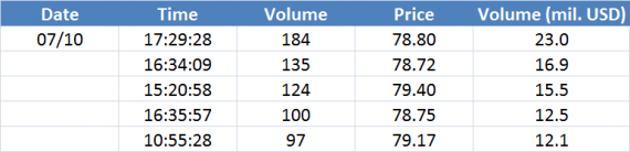 Největší obchody podle objemu na Brent (aktivní future kontrakt)