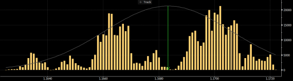 Graf důležitých úrovní, největšího obchodu a opčních expirací na EURUSD
