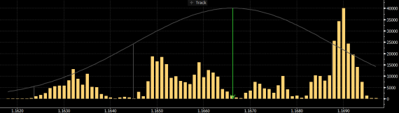 Graf důležitých úrovní, největšího obchodu a opčních expirací na EURUSD