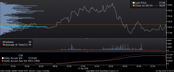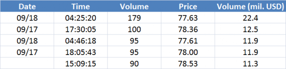 Největší obchody podle objemu na Brent (aktivní future kontrakt)