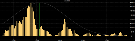 Celkový počet obchodů na jednotlivých cenách během minulé obchodní seance. Úrovně, na kterých se minulou obchodní seanci daný měnový pár nejčastěji zdržoval, mohou působit jako účinný magnet také dnes.