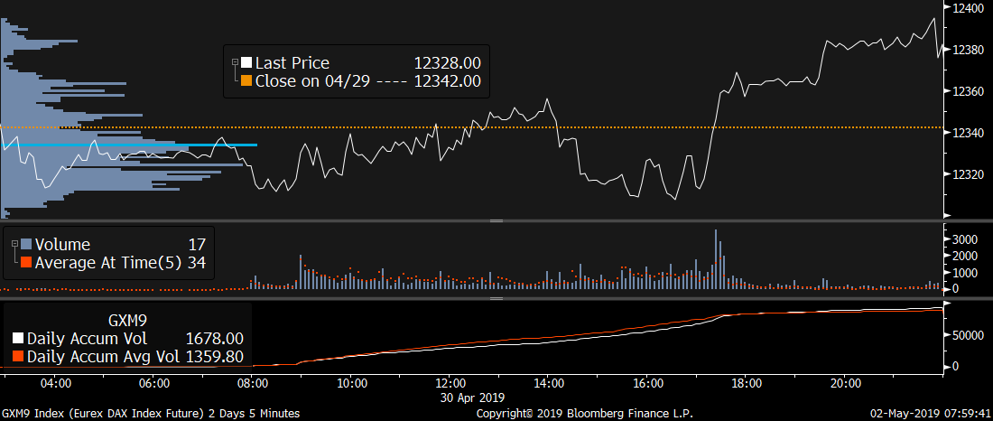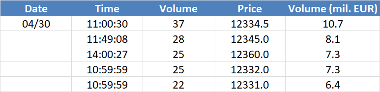 Největší obchody podle objemu na DAX (aktivní future kontrakt)