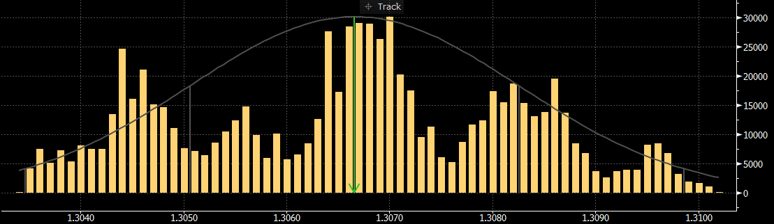 - nejvíce obchodů zrealizováno na ceně 1.3070