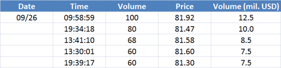 Největší obchody podle objemu na Brent (aktivní future kontrakt)