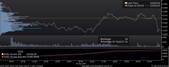 Největší obchody podle objemu na DAX (aktivní future kontrakt)
