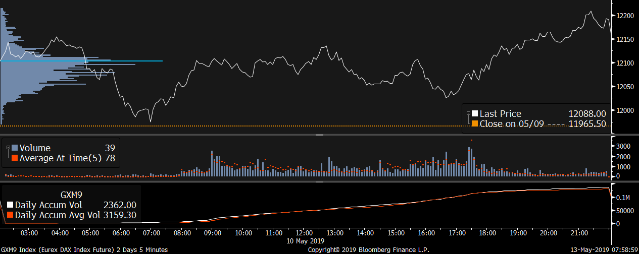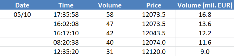 Největší obchody podle objemu na DAX (aktivní future kontrakt)