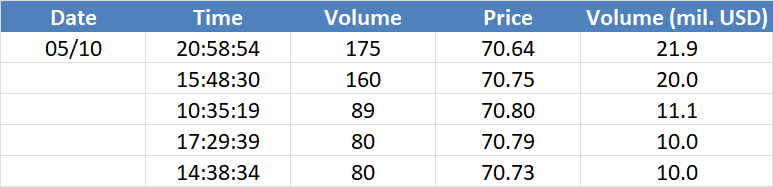 Největší obchody podle objemu na Brent (aktivní future kontrakt)