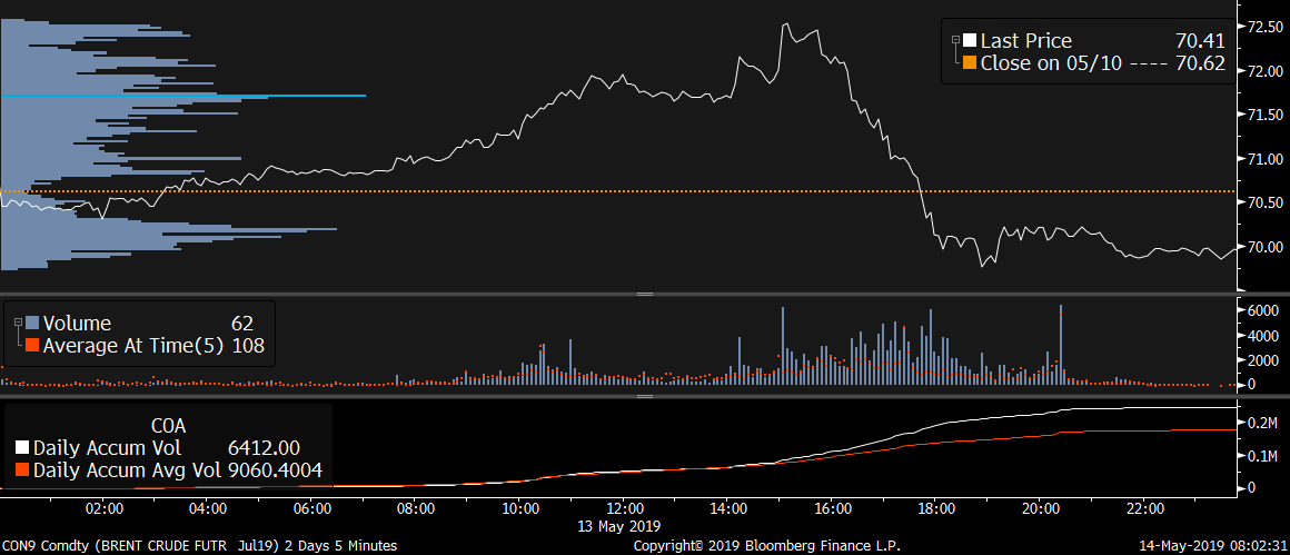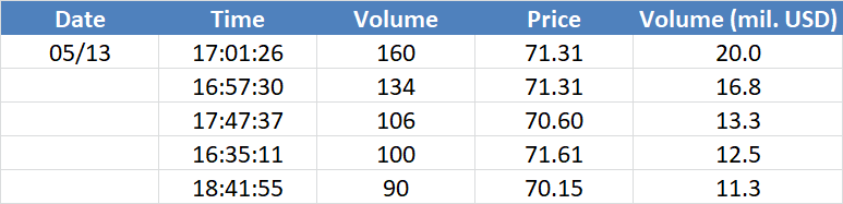 Největší obchody podle objemu na Brent (aktivní future kontrakt)