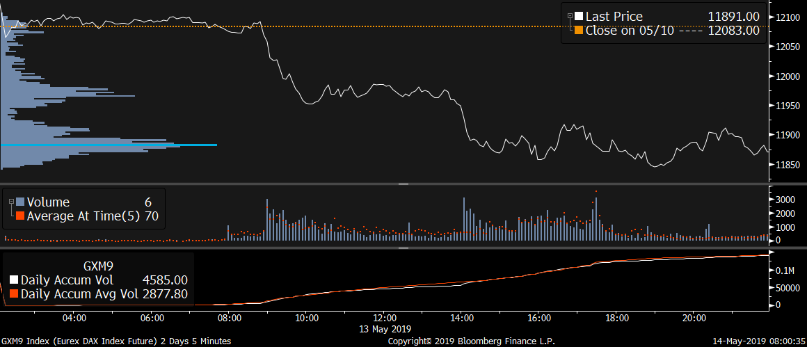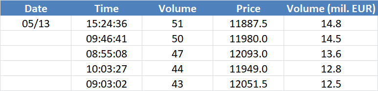 Největší obchody podle objemu na DAX (aktivní future kontrakt)