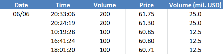 Největší obchody podle objemu na Brent (aktivní future kontrakt)