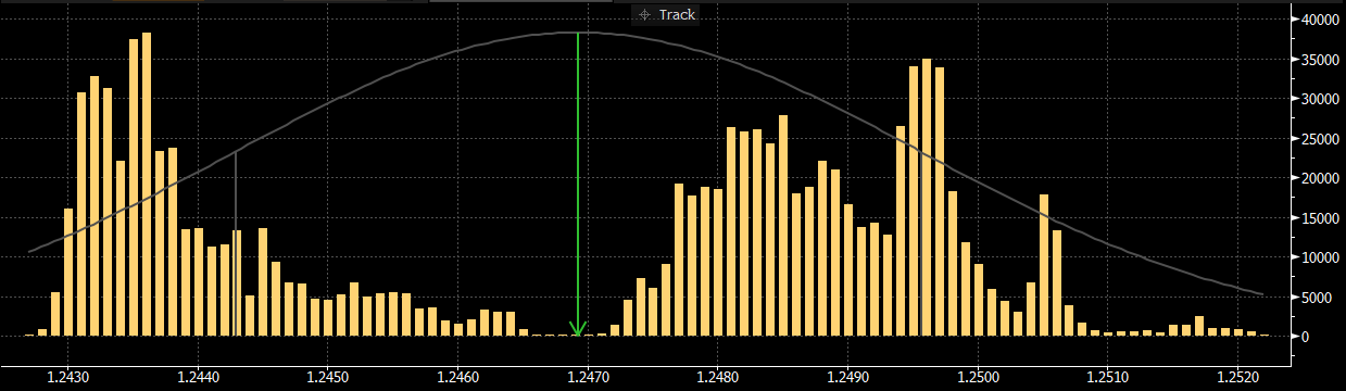 Graf důležitých úrovní, největšího obchodu a opčních expirací na GBPUSD