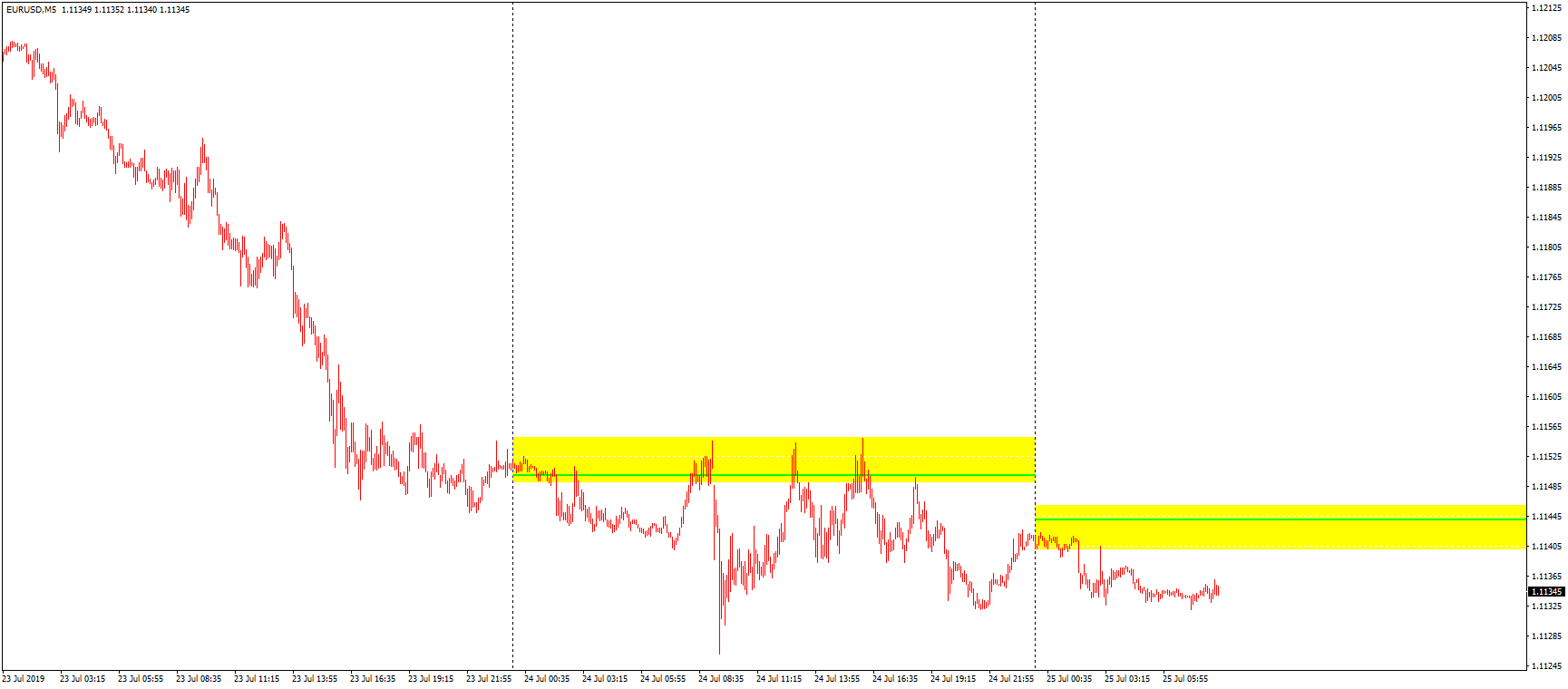 Celkový počet obchodů na jednotlivých cenách během minulé obchodní seance. Úrovně, na kterých se minulou obchodní seanci daný měnový pár nejčastěji zdržoval, mohou působit jako účinný magnet také dnes.