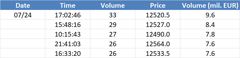 Největší obchody podle objemu na DAX (aktivní future kontrakt)