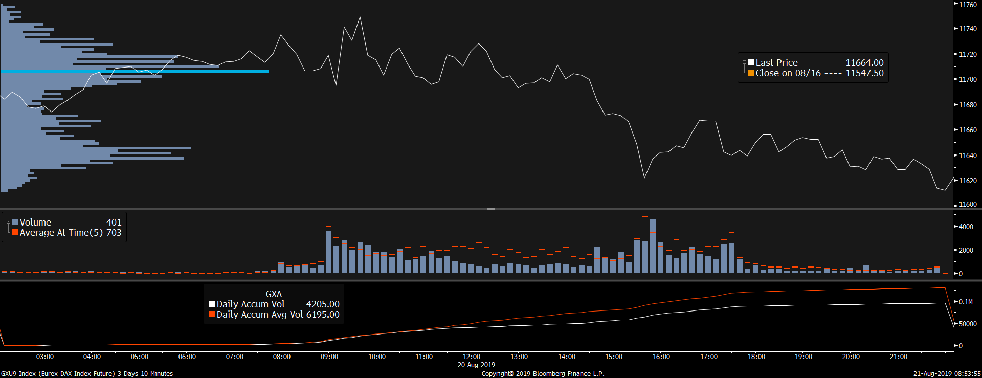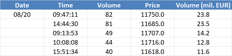 Největší obchody podle objemu na DAX (aktivní future kontrakt)