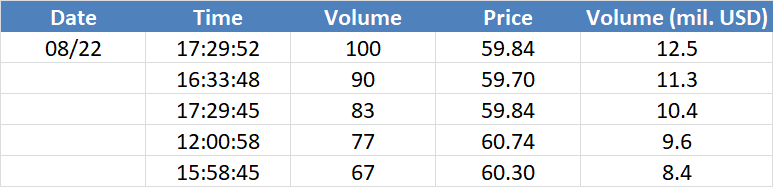Největší obchody podle objemu na Brent (aktivní future kontrakt)