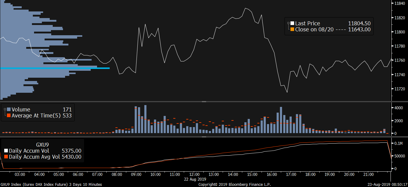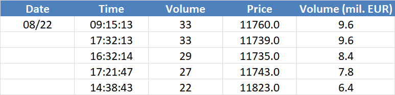 Největší obchody podle objemu na DAX (aktivní future kontrakt)