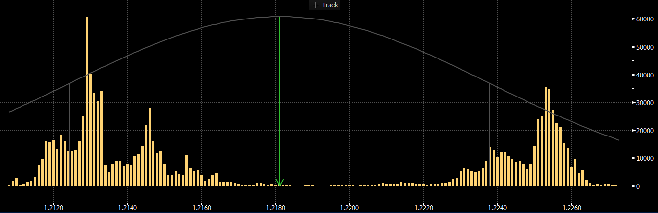 Graf důležitých úrovní, největšího obchodu a opčních expirací na EURUSD