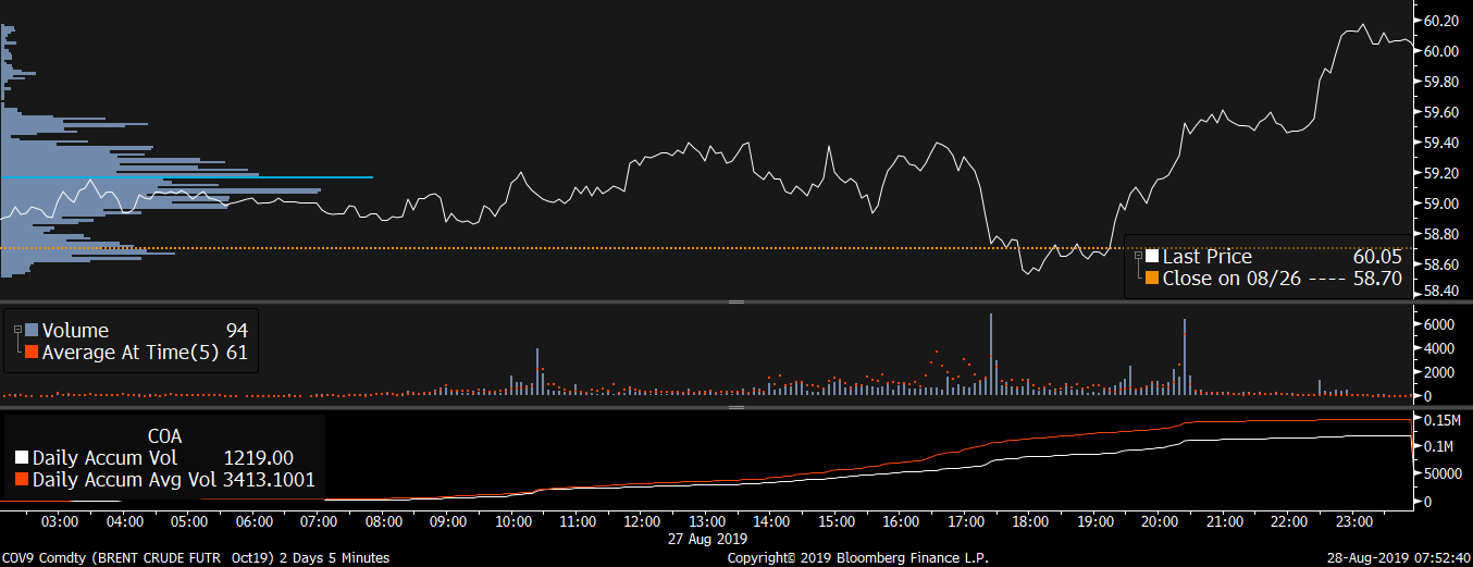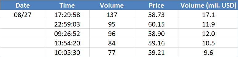 Největší obchody podle objemu na Brent (aktivní future kontrakt)