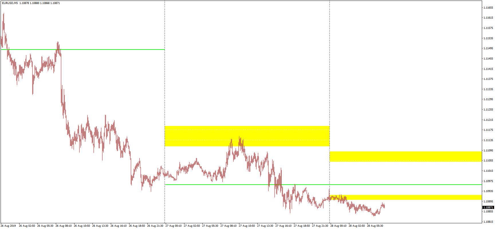 Celkový počet obchodů na jednotlivých cenách během minulé obchodní seance. Úrovně, na kterých se minulou obchodní seanci daný měnový pár nejčastěji zdržoval, mohou působit jako účinný magnet také dnes.