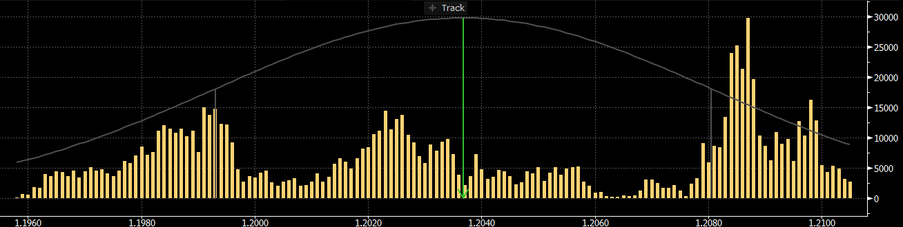 Graf důležitých úrovní, největšího obchodu a opčních expirací na EURUSD