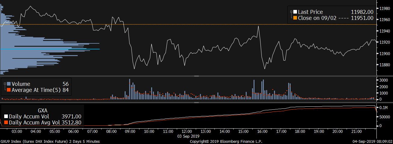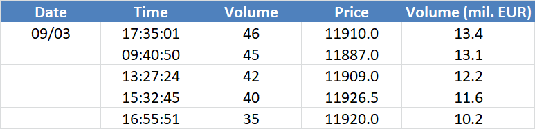 Největší obchody podle objemu na DAX (aktivní future kontrakt)