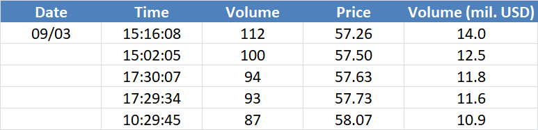Největší obchody podle objemu na Brent (aktivní future kontrakt)
